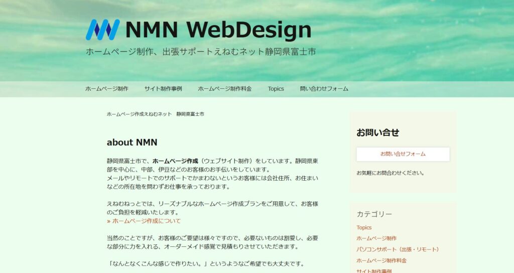 えねむネットは、静岡県東部を中心に、ホームページ制作をしている会社です。コストパフォーマンスに優れたサイト制作が得意で、ドメイン・レンタルサーバー代、そしてWordPressの導入が込みで、一式¥99,880(税込み)~で依頼が可能です。