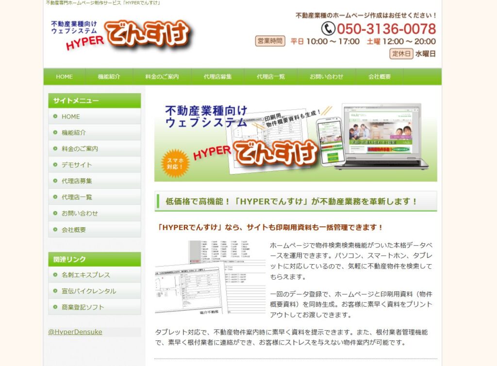 オレンジホールディング株式会社が提供する「HYPERでんすけ」は、不動産会社専門のホームページ制作サービスです。クライアントのビジネス拡大のために、集客に強く、運用しやすいウェブサイトの構築に力を入れています。