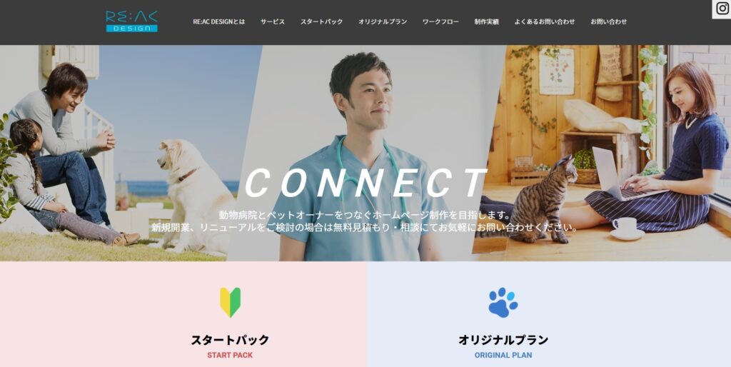 株式会社ハンズが展開する「RE:AC DESIGN(リアックデザイン)」は、動物病院のホームページ制作に特化した専門サービスです。大きな特徴は、単に見た目を整えるだけでなく、獣医療業界の動向を熟知したプロが、病院の経営課題に寄り添って制作をおこなう点にあります。
