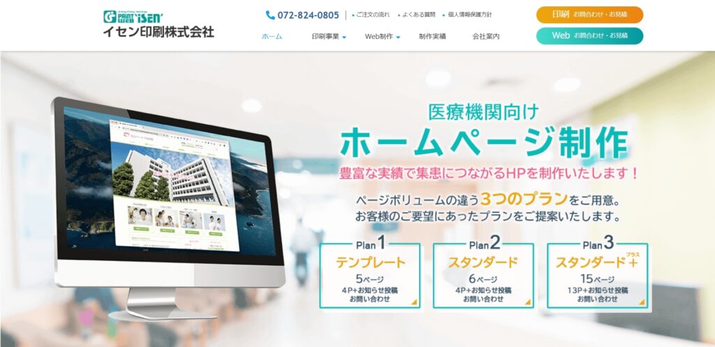 イセン印刷株式会社は、医療機関専門のサービス提供で40年の実績を持つ、大阪府寝屋川市の制作会社です。その豊富な経験とノウハウを活かし、病院やクリニックに特化した、集患に直結するホームページ制作を得意としています。