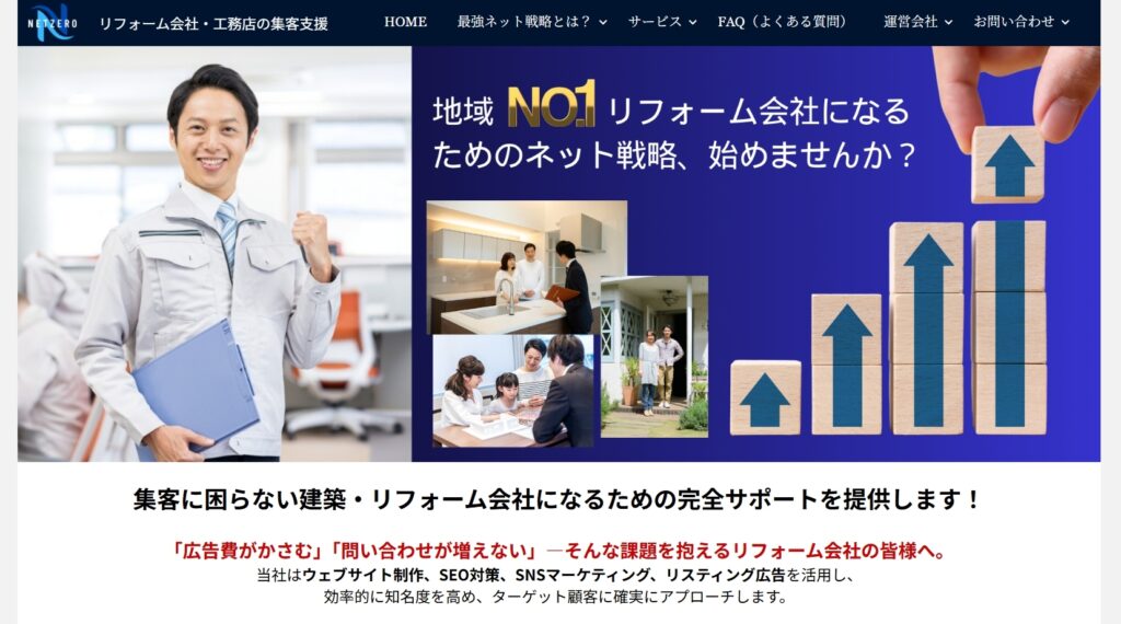 「リフォーム会社さんたちが誇りを持って自社サービスを提供できる社会」を目指すという強い理念のもと、リフォーム業界に特化した集客支援を行っており、Webサイトを通じた明確な成果と長期的なビジネス成長を求める方におすすめです。