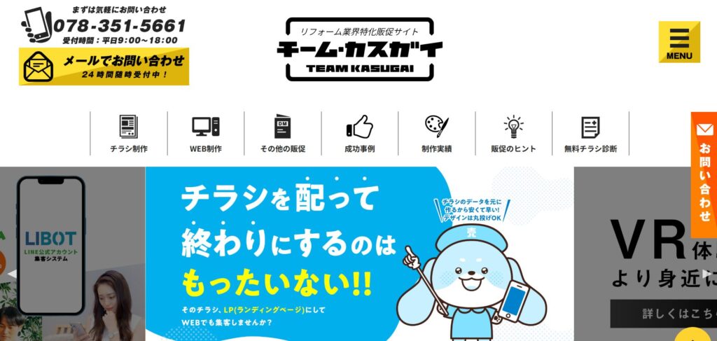 同社にホームページ制作を依頼する最大の強みは、「作るため」ではなく「課題を解決するため」の販促を提案していることです。これまでに10,000件以上のリフォームチラシを制作してきた実績から得た「売れるノウハウ」をWebサイト制作にも応用し、売上アップや集客力アップを目的にした制作・運用をサポートしています。