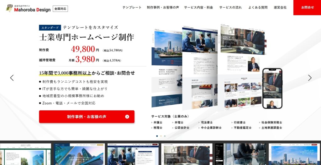 株式会社まほろばが運営する「まほろばデザイン」は、弁護士をはじめとする士業専門のホームページ制作サービスを、全国対応で提供しています。