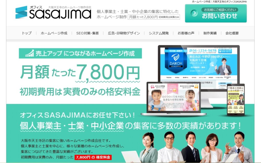 オフィスSASAJIMAは、大阪を拠点に、税理士、司法書士、行政書士といった士業のWeb集客に特化したホームページ制作会社です。これまでに300社以上の制作実績を通じて培ってきたノウハウを活かし、売上アップに繋がることを最優先に考えたウェブサイトを構築しています。