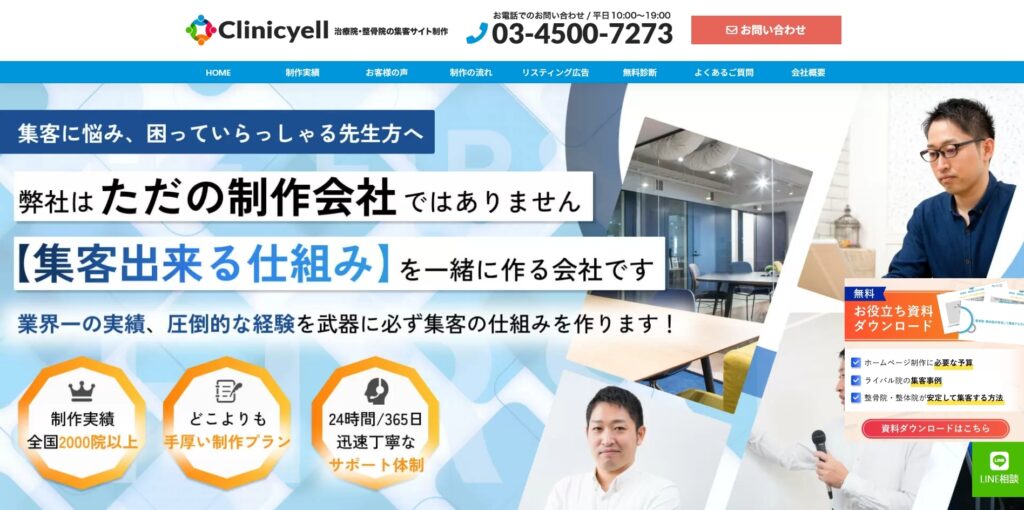 クリニックエールは、鍼灸院や整骨院、整体院といった治療院に特化して、2,000院を超えるホームページを制作してきた専門会社です。医療機関ならではの情報発信のルールや業界の動向を熟知しており、クライアントの「強み」や「誰に来てほしいか」を明確に言語化して形にすることを得意としています。