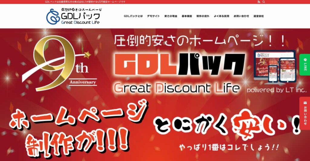 GDL(GDLパック)は、兵庫県明石市の株式会社LTが提供する、「とにかく安い5万円の格安ホームページ」制作サービスです。