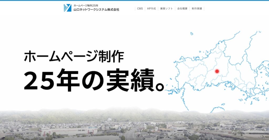 山口ネットワークシステム株式会社は、山口県山口市を拠点に25年の歴史を持つホームページ制作会社です。「ホームページは情報デザインである」という考えのもと、見た目のかっこよさだけでなく、情報の伝わりやすさを追求したサイト作りを行っており、その制作実績は1,000社を超えています。