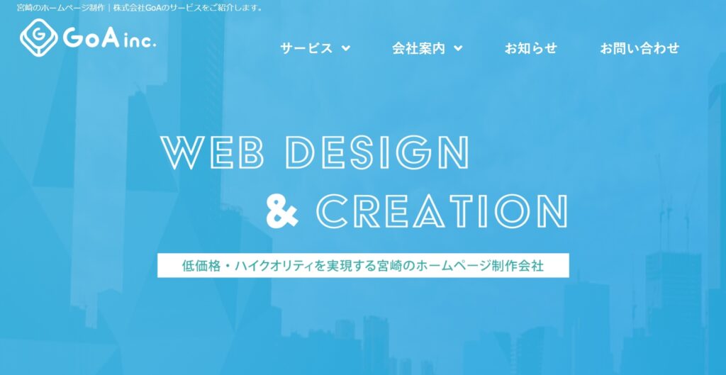 株式会社GoAは、宮崎県宮崎市にオフィスを構え、地域活性化とクライアントのビジネス拡大を目指して活動している制作会社です。「想いが伝わる」デザインをモットーに、単に綺麗なだけでなく、「見やすい」「使いやすい」「わかりやすい」ホームページ作りを徹底しています。