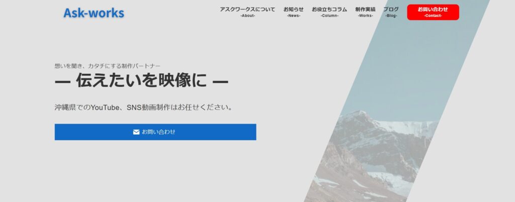Ask-worksは、沖縄県を拠点に「伝えたい」を映像とWebで具現化する制作パートナーです。代表自身が「想いを聞き、カタチにする」という理念を掲げ、動画制作を主軸に、静止画とテキストだけでは伝えきれない企業の魅力を最大限に引き出す支援をおこなっています。