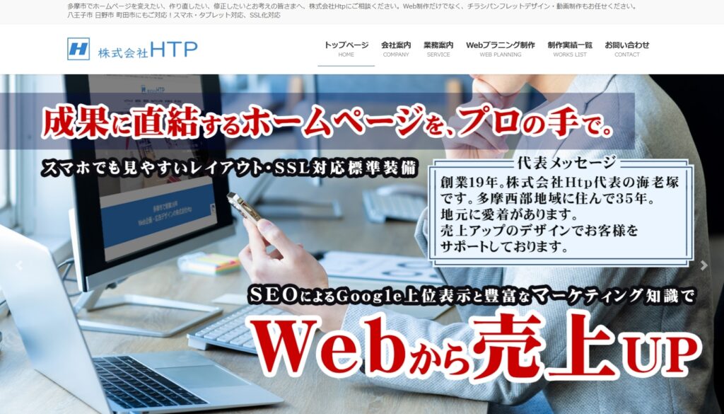 株式会社HTPは、東京都多摩市で20年以上の実績を持つ、地域に根ざしたホームページ制作会社です。「10件あれば10通りの事情がある」という考えのもと、型通りのプランを押し付けるのではなく、クライアント一人ひとりの状況に合わせた最適なプランを提案しています。特に、スマートフォンでの見やすさや使いやすさを重視した設計を得意としており、今の時代に求められる「伝わるサイト」を形にします。