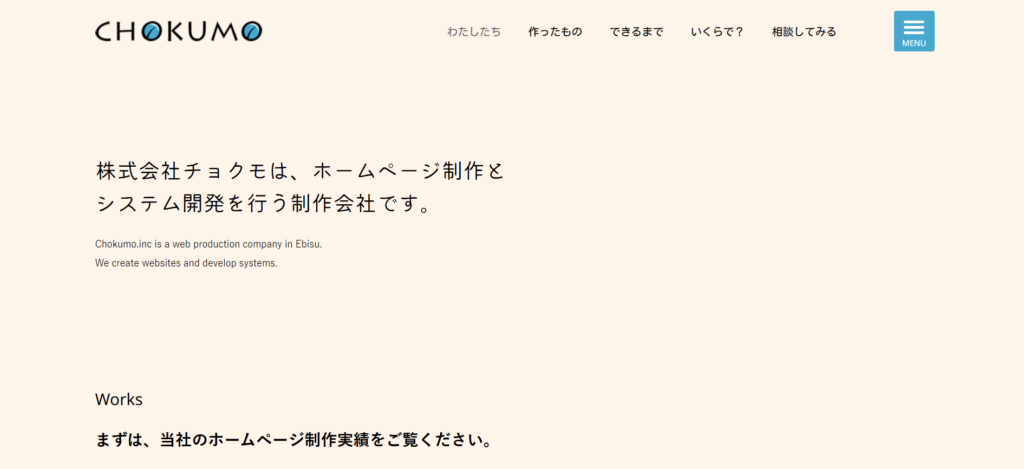 株式会社チョクモは、東京都渋谷区恵比寿を拠点に、WEBサイト制作やシステム開発を手がけるクリエイティブ企業です。使う人が迷わない心地よい操作感の提供を最も大切にしています。最新の技術を追いかけるだけでなく、それが本当にクライアントやその先にいるユーザーにとって使いやすい形になっているかを常に問い直しながら制作を進めてくれます。