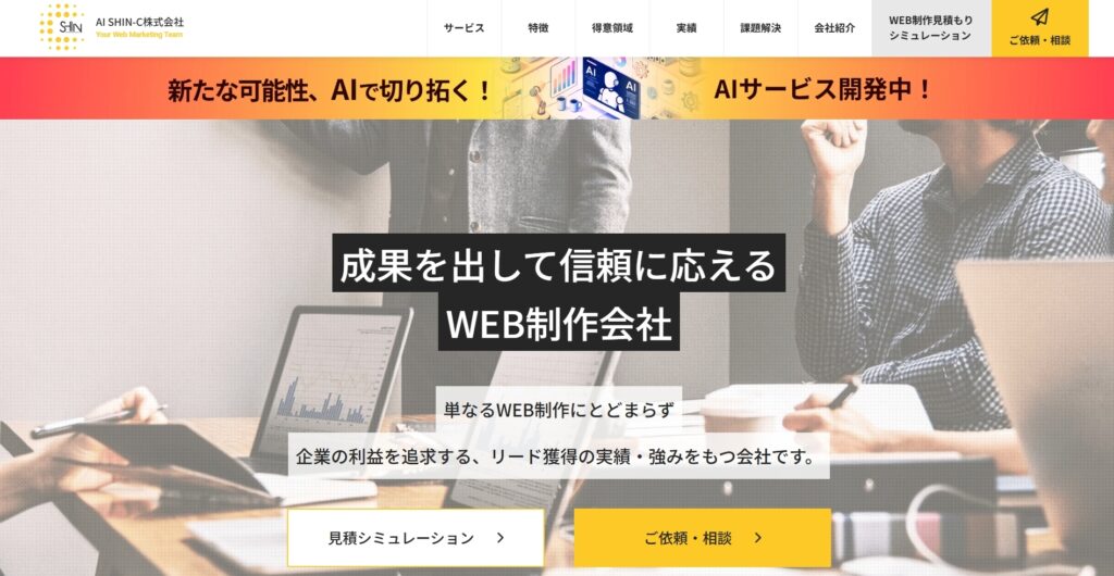 AI SHIN-C株式会社は、東京・渋谷区恵比寿を拠点に、Web制作とWebマーケティングを軸としたデジタル活用の支援をおこなう会社です。特に「現実的な予算で最高のご提案を」という考えのもと、少数精鋭のベストメンバーでプロジェクトを担当する体制を整えています。新しい商品やサービスの立ち上げ、求人情報の見直しなど、その時々の目標に合わせて、ランディングページ(LP)や公式サイトを効果的に使い分ける戦略的な提案が魅力です。