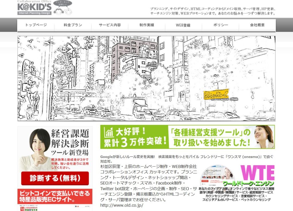 コラボレーションオフィスカッキッズは、東京都杉並区の荻窪を拠点に活動するホームページ制作会社です。単にページを作るだけでなく、インターネットを使った「お悩み解決」のプロとして、これまで250社以上のクライアントをサポートしてきた確かな実績があります。